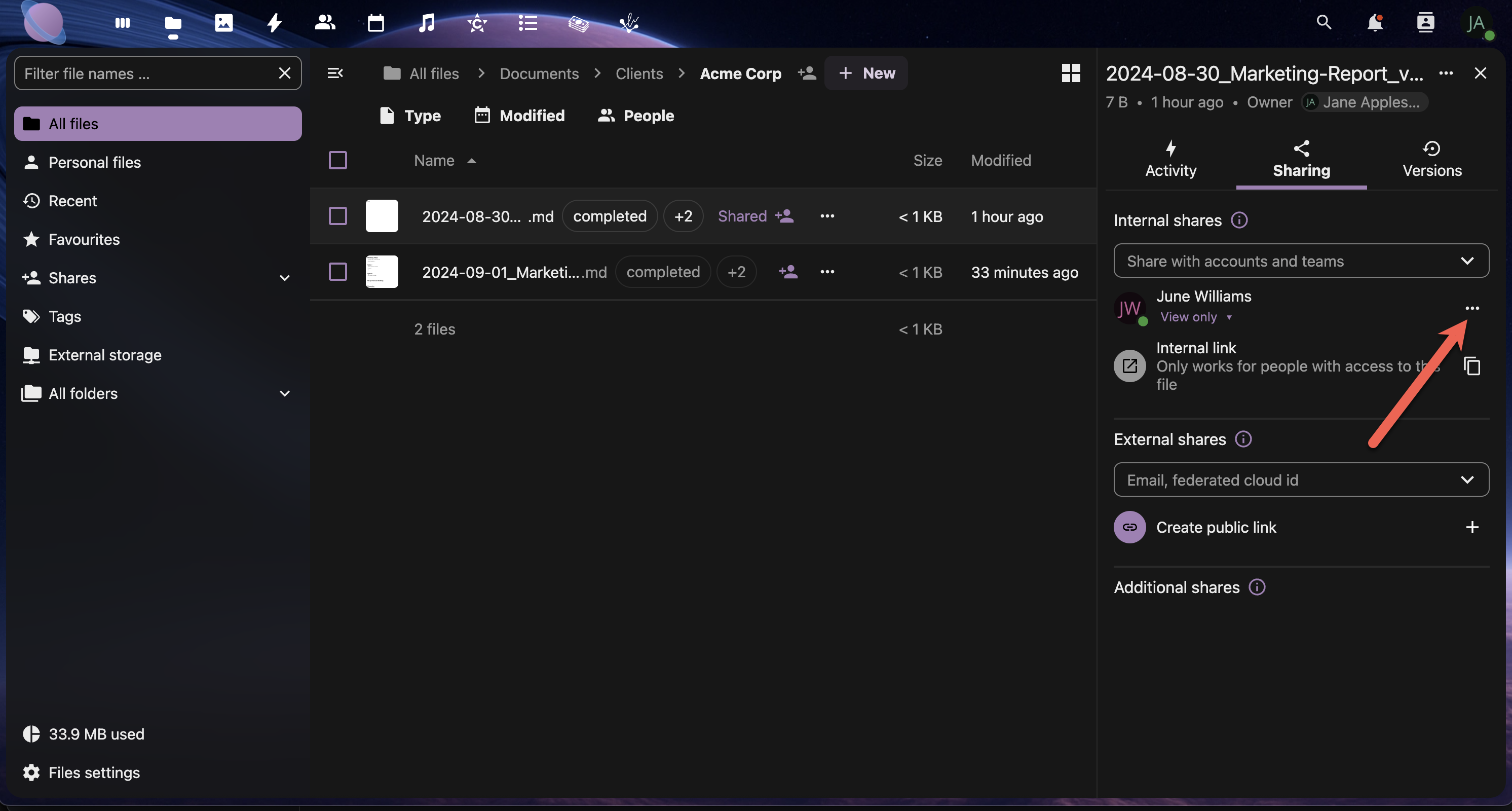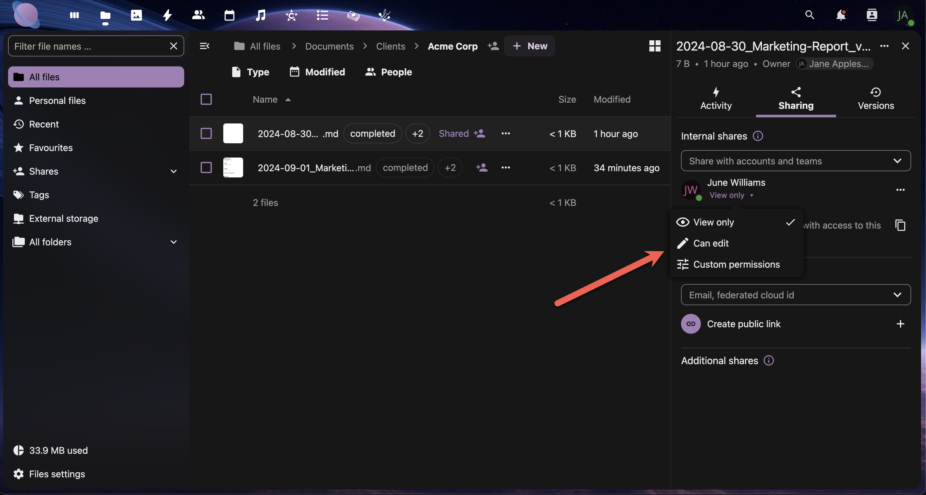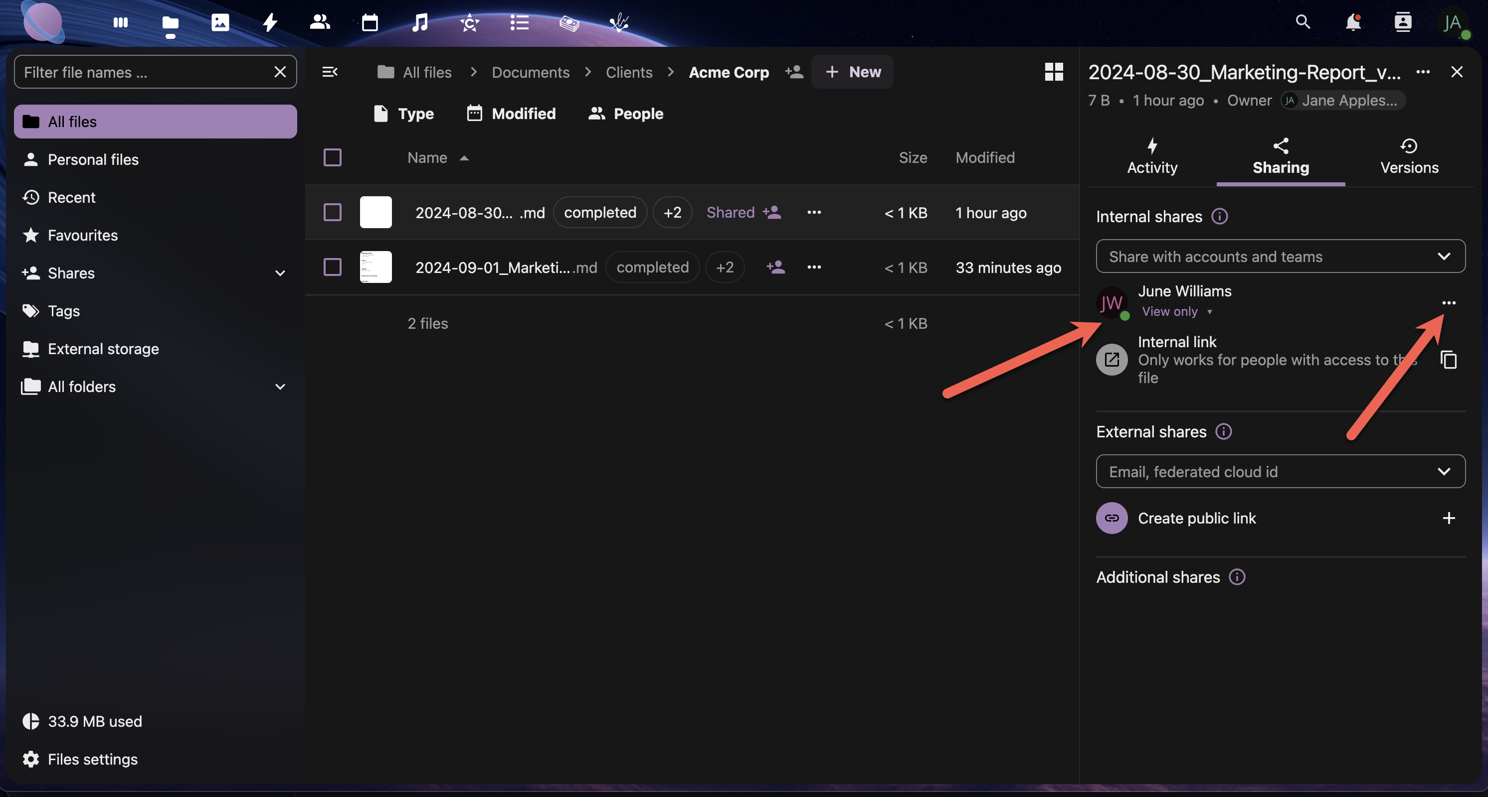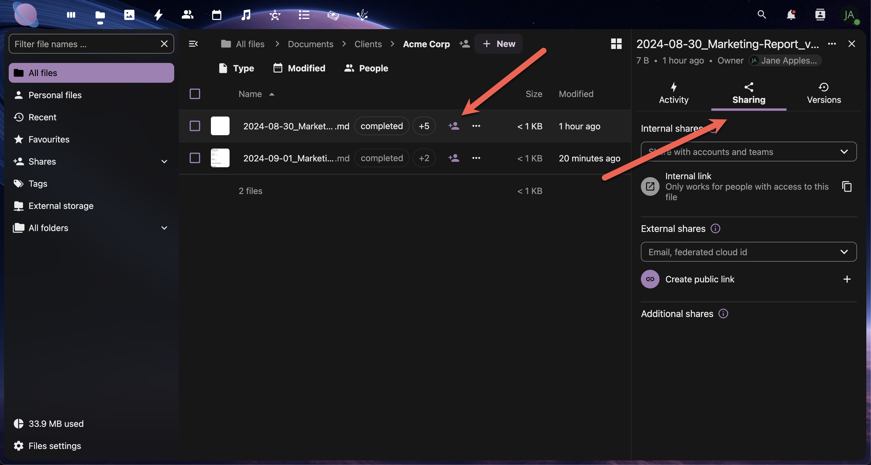 NextCloud v31 offers several sharing methods, each suited for different collaboration needs:
